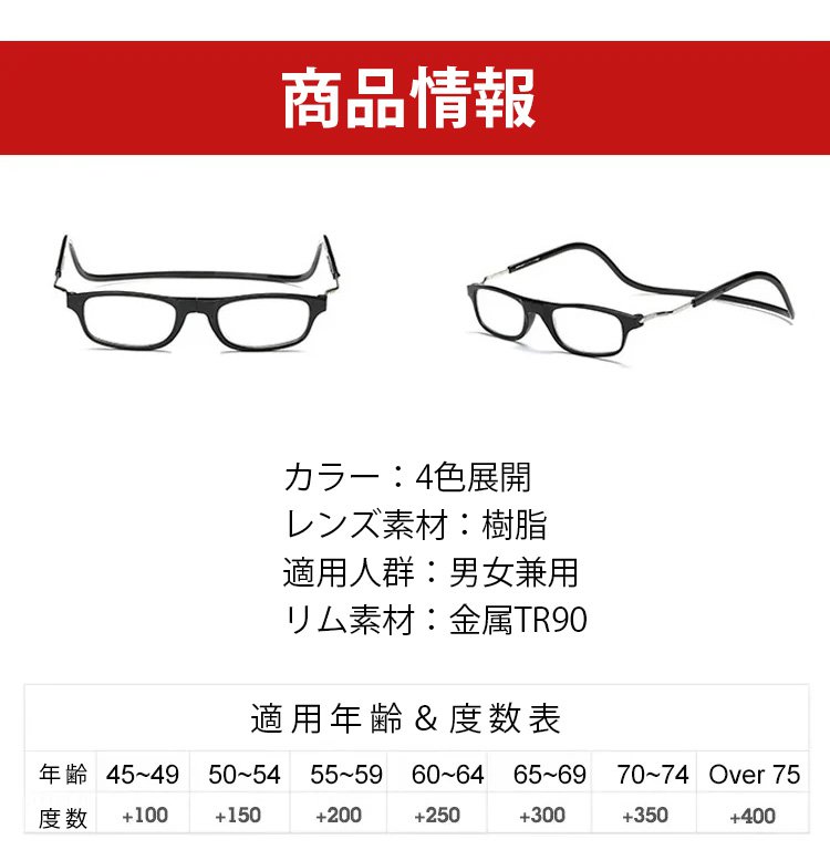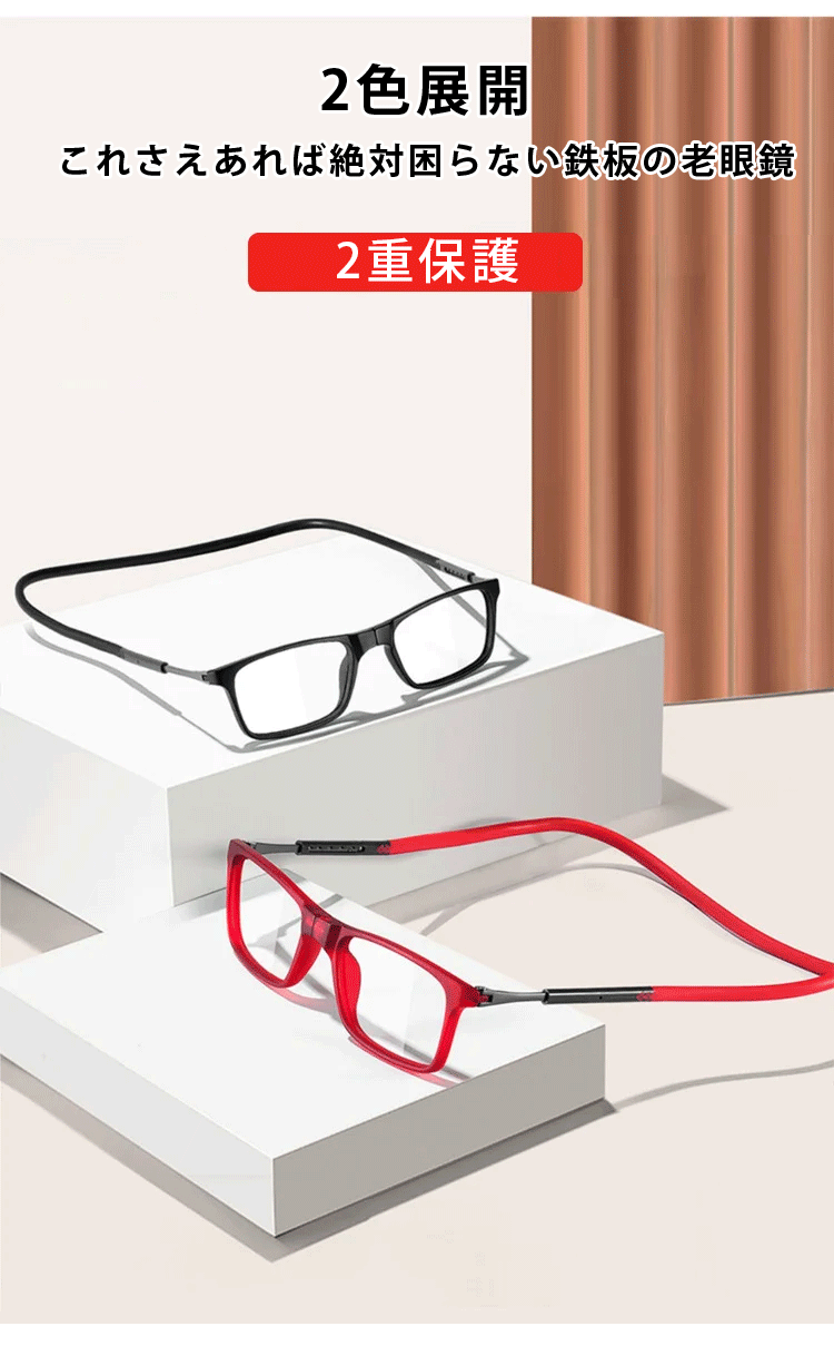 1個買うと1個無料!首掛け式老メガネ、紛失を防ぐ!