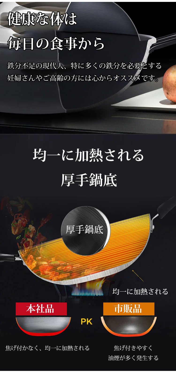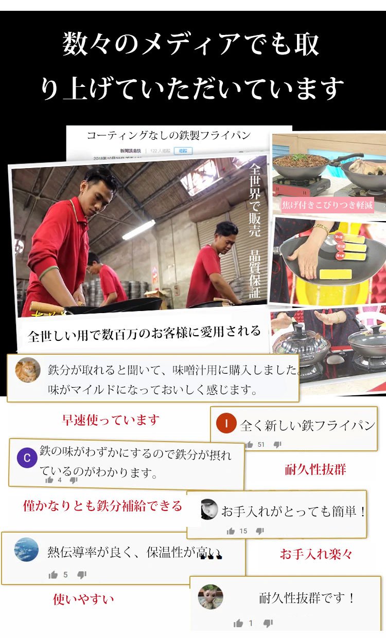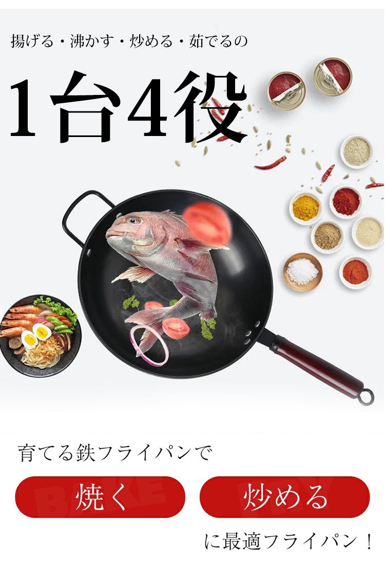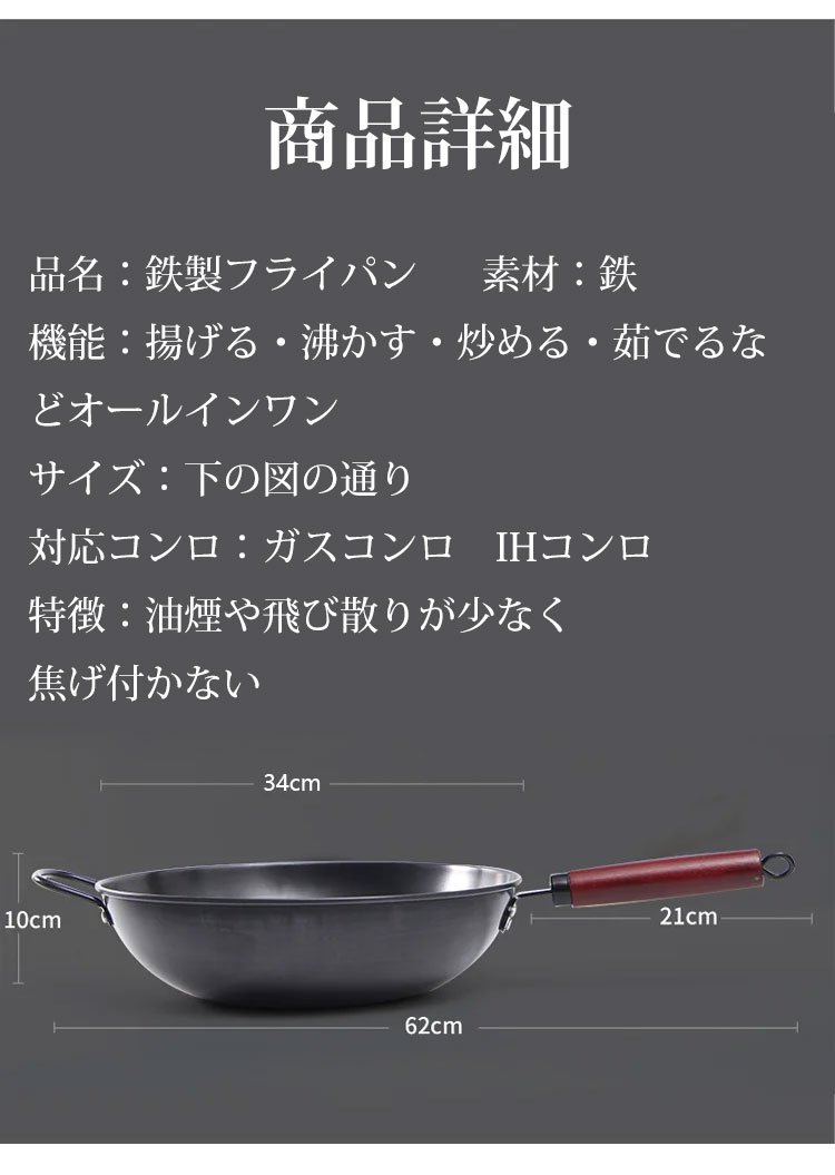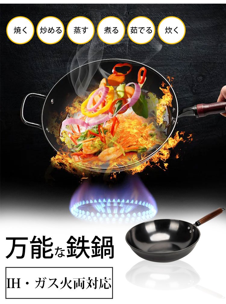 コーティングなしの鉄製フライパン